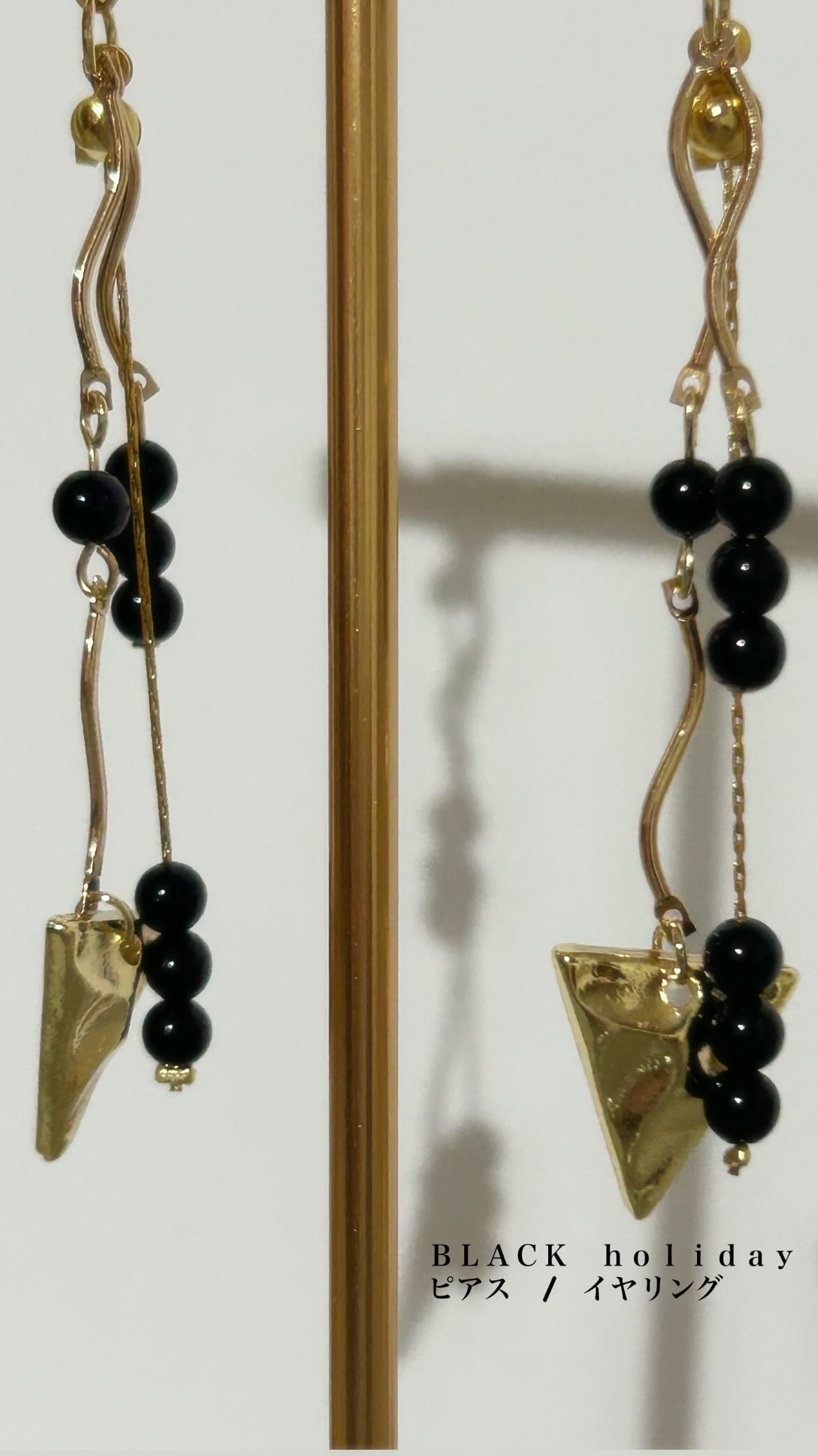 ネックレスとピアスorイヤリングのセット ネックレスとピアスをセットで ¥6500。 単品合計 ¥7030 → セットだけの特別価格 ¥530お得に購入できます。 今回だけのセット価格なので、気になっている方はお早めに。 “黒の気品”を身にまとう大人のためのアクセサリー。 オンでもオフでも一瞬で印象を引き締めてくれる、あなたの“自信の味方”になるセット BLACK holiday 使用天然石/オニキス 意味:ブレずに進むための“芯”を作る ▶︎ネックレス 素材/オニキス、ガラスビーズ、淡水パール(チャーム中央) チャーム素材/合金製 14mm×15mm 金具/サージカルステンレス 長さ/35cm +5cmの調整金具付き ▶︎ピアス/イヤリング 素材/オニキス 金具/サージカルステンレス 長さ/6cm(最長) 重さ/軽量 艶やかなオニキスが作り出し こなれたおしゃれ さらっと気軽につけれて コーデの物足りないを満足に変えてくれます 派手じゃないのに、程よく主張のあるオニキス 黒とゴールドの組み合わせって どんな服でも一気に締まって “おしゃれしてる人”に見せてくれる うねうねのゴールドのチャームが揺れる こんなおしゃれでニュアンス感たっぷりの組み合わせ 嫌いな人はいないんじゃかな思うくらい おしゃれな組み合わせ! 似合うかな?って迷う人ほど つけた瞬間の変化に驚くデザイン